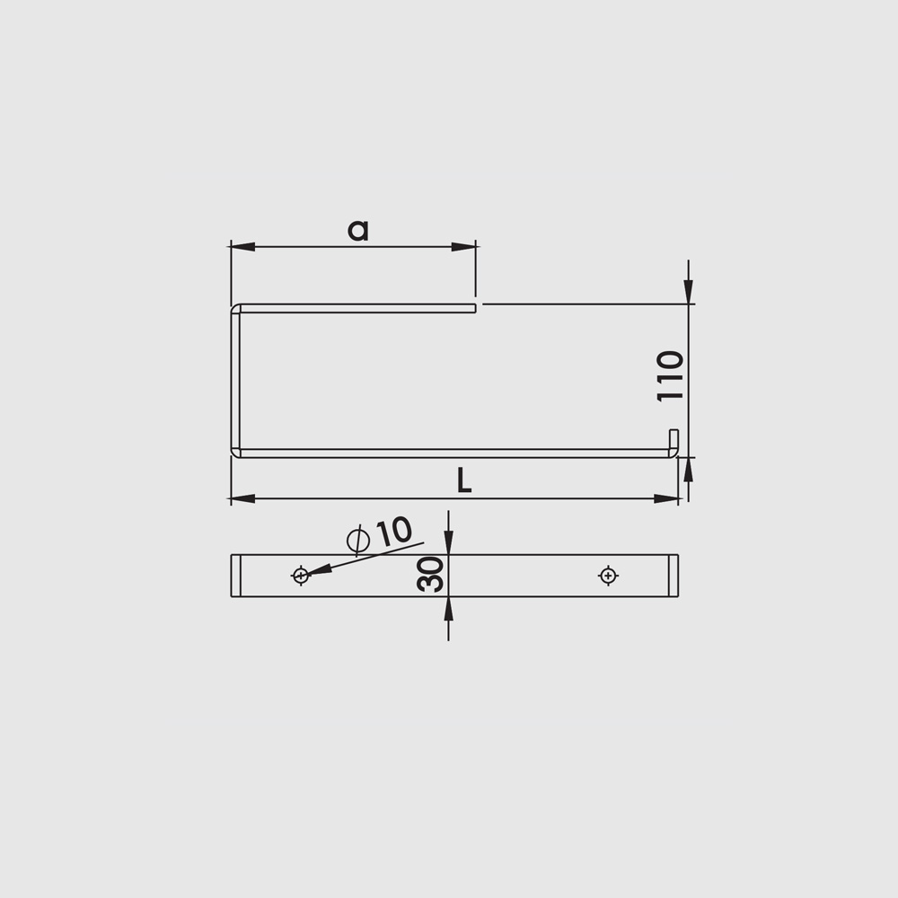 | Typ | Length L | Hole | Thickness | Load | Pack | Article |