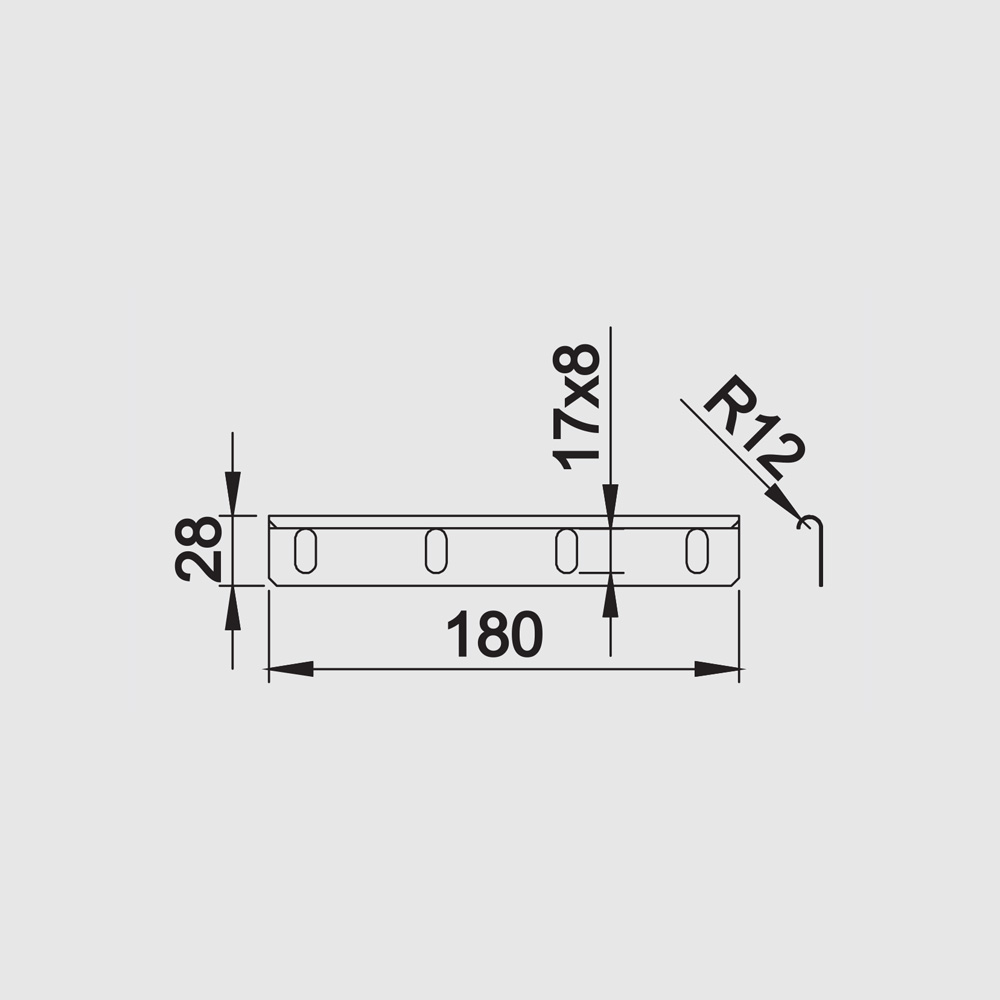 Bočna spojnica sa bočnim perforacijama 17 x 8 mm koristi se za međusobno povezivanje 2 PNK regala visine 30 mm.
