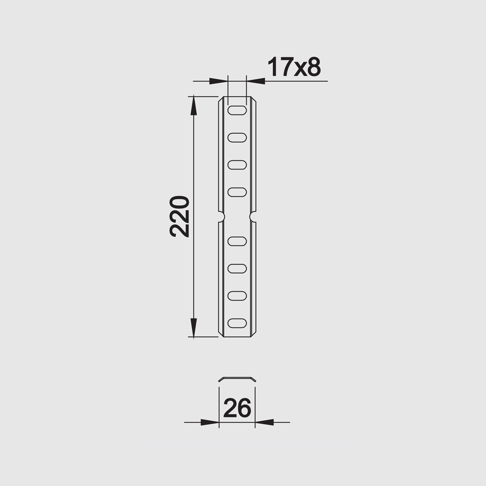 Lomljiva spojnica koristi se za spajanje 2 PNK regala na licu mesta gde se ugao formira prema datoj potrebi montaže. Bočne perforacije na spojnici su 32 x 7 mm.